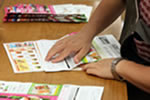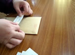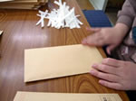 チラシを封入、封緘し、ラベルを貼る作業です。