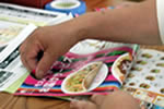 宅配ピザ、寿司、不動産チラシ等を折っています。